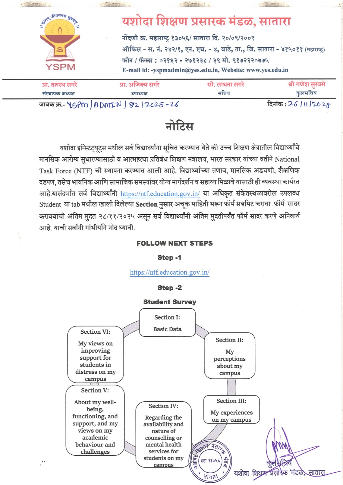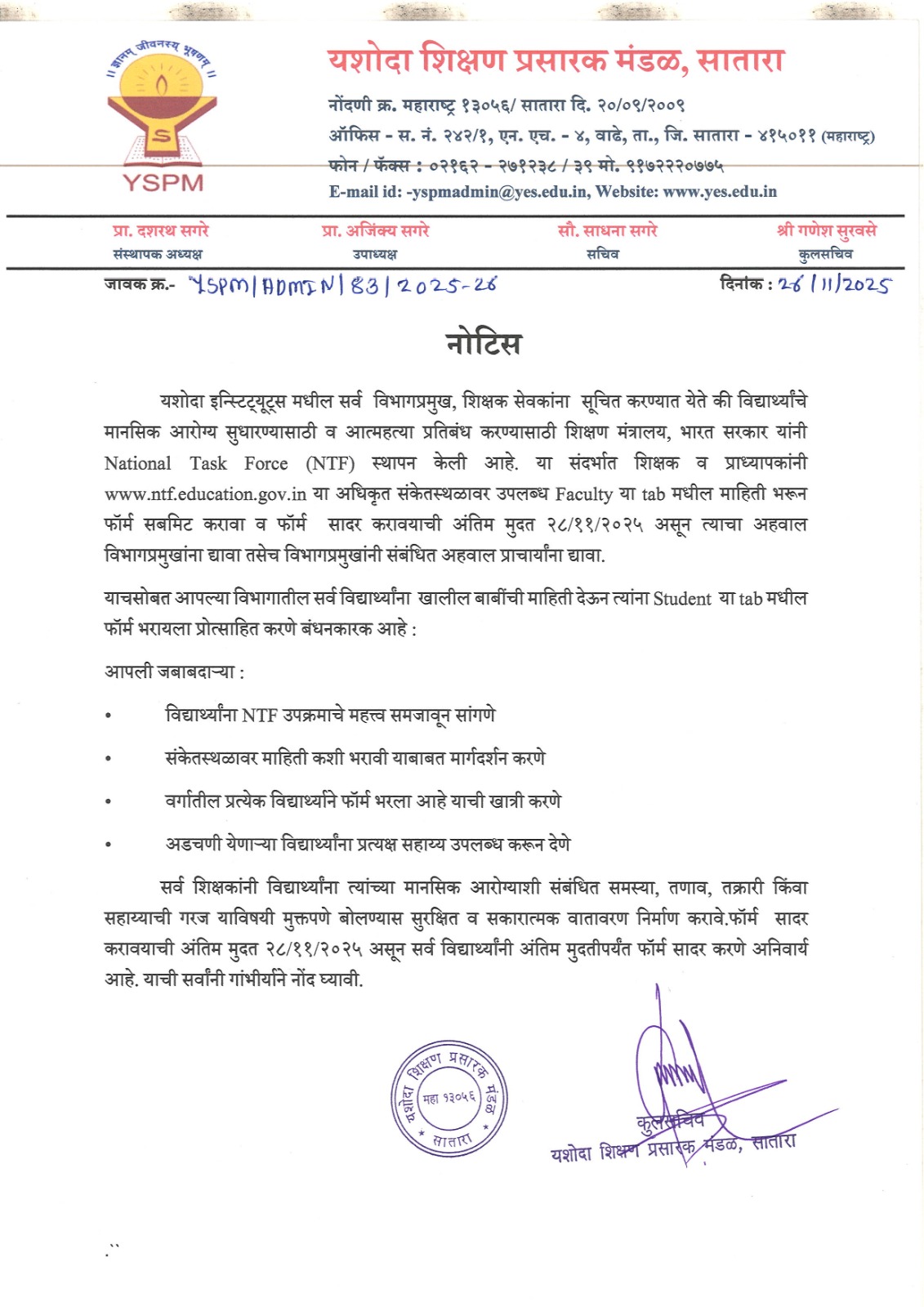 नोटीस - Notional Task Force (NTF) स्थापन केलेली आहे, त्यांच्या संकेतस्थळावर फॉर्म भरण्याबाबत... |