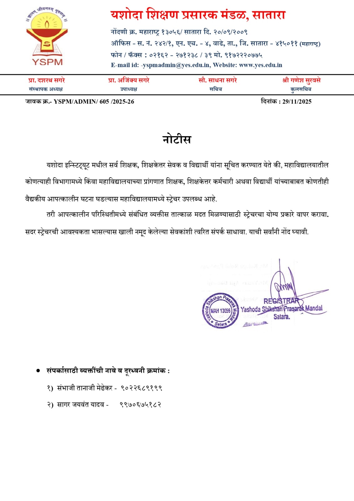 Notice - Complete Registration for next Academic Year 2025-26. |