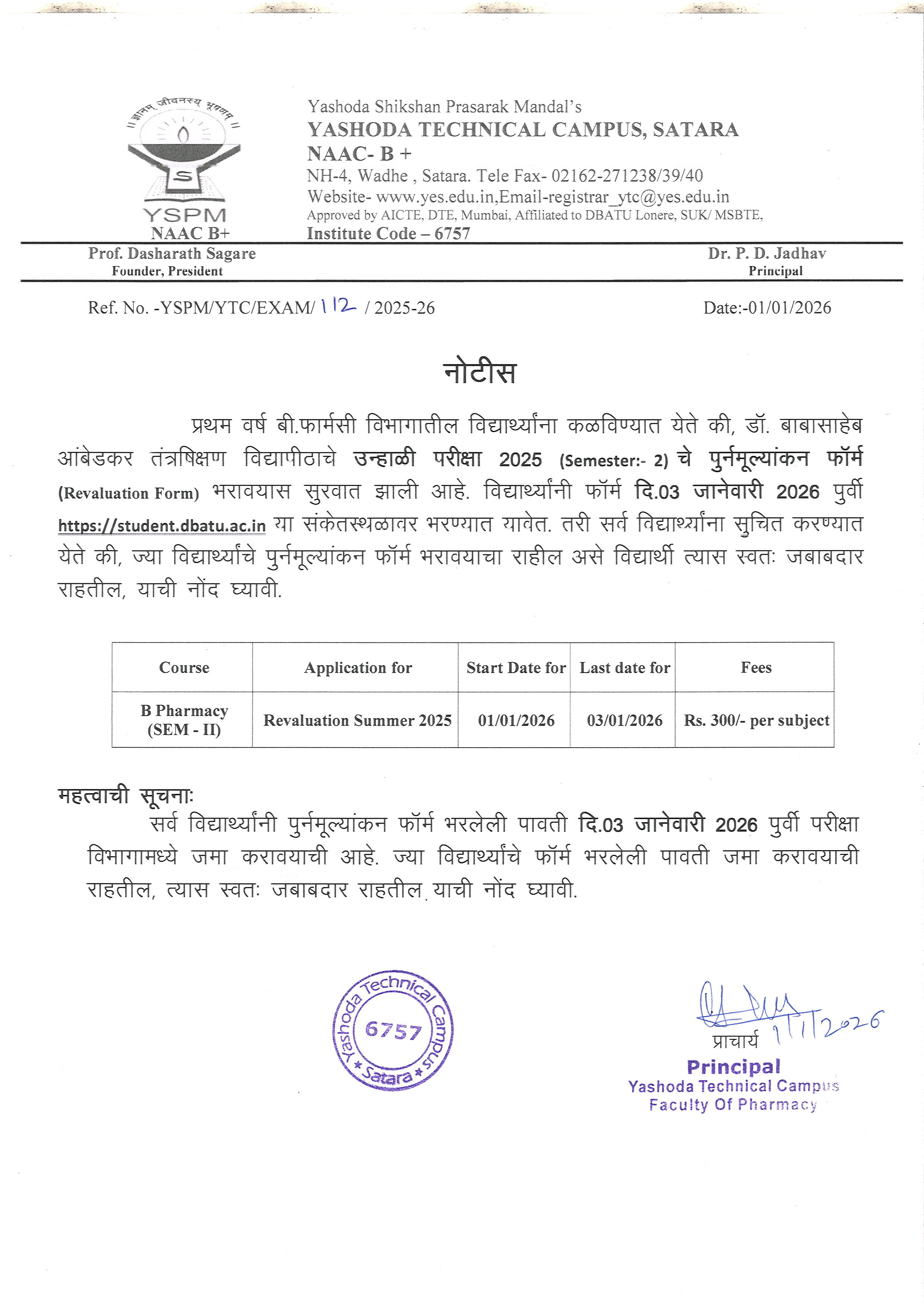 एम फार्मसी विद्याथीच्या परीक्षाबाबत नोटीस |